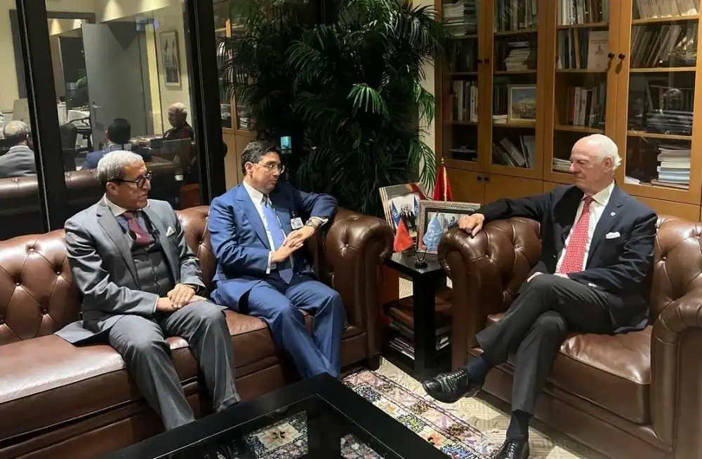 عقد وزير الشؤون الخارجية والتعاون الإفريقي والمغاربة المقيمين بالخارج، ناصر بوريطة، يوم الاثنين في نيويورك، جلسة عمل مع المبعوث الشخصي للأمين العام للأمم المتحدة إلى الصحراء المغربية، ستيفان دي ميستورا، وذلك بطلب من هذا الأخير.