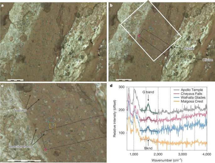 أجرت “بيرسيفرانس”، التي تعمل في منطقة جيزيرو كراتر، تحليلات للصخور في قناة نهر قديمة، حيث كشفت عن هياكل معدنية وكيميائية غير عادية قد تكون ناتجة عن عمليات بيولوجية قديمة. وفقًا لتقرير نشرته “ناسا”، تشمل هذه العلامات ترسبات كربونية ومعادن حديدية تشير إلى بيئة مائية كانت صالحة للحياة قبل مليارات السنين. ووصفت نيكي فوكس، رئيسة بعثة العلوم في “ناسا”، النتائج بأنها “الأقرب الذي تم التوصل إليه فعليًا نحو العثور على حياة قديمة على المريخ”.