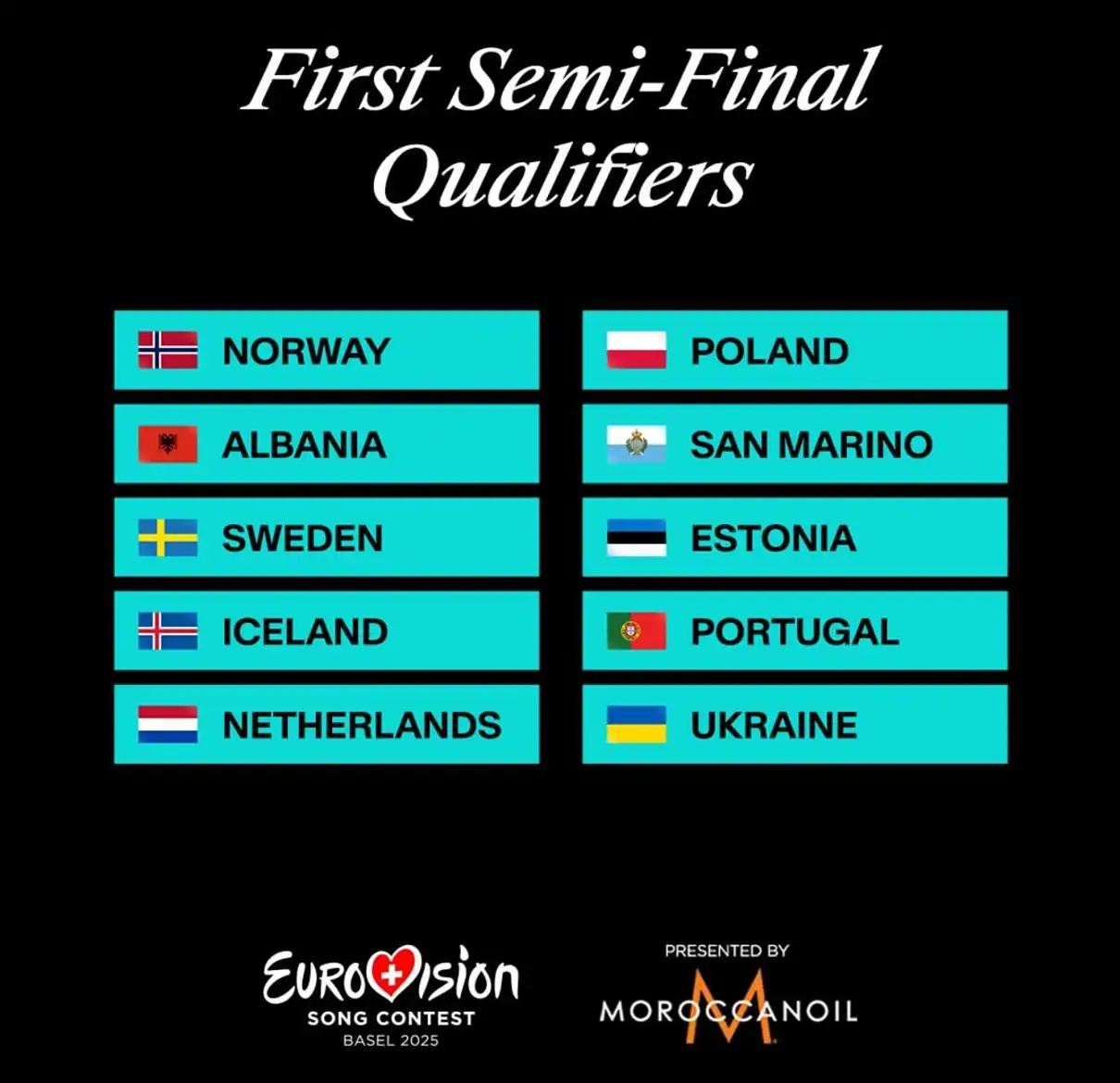 يوروفيجن 2025: الدول المتأهلة من نصف النهائي الأول