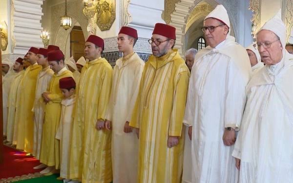 L’Emir des croyants, Sa Majesté le Roi Mohammed VI, a accompli lundi la prière de l’Aïd al-Fitr à la Mosquée Ahl Fas à Rabat, accompagné de SAR le Prince Héritier Moulay El Hassan, SAR le Prince Moulay Rachid, SAR le Prince Moulay Ahmed et SAR le Prince Moulay Ismaïl. SM le Roi a reçu des félicitations à cette occasion après la prière.
